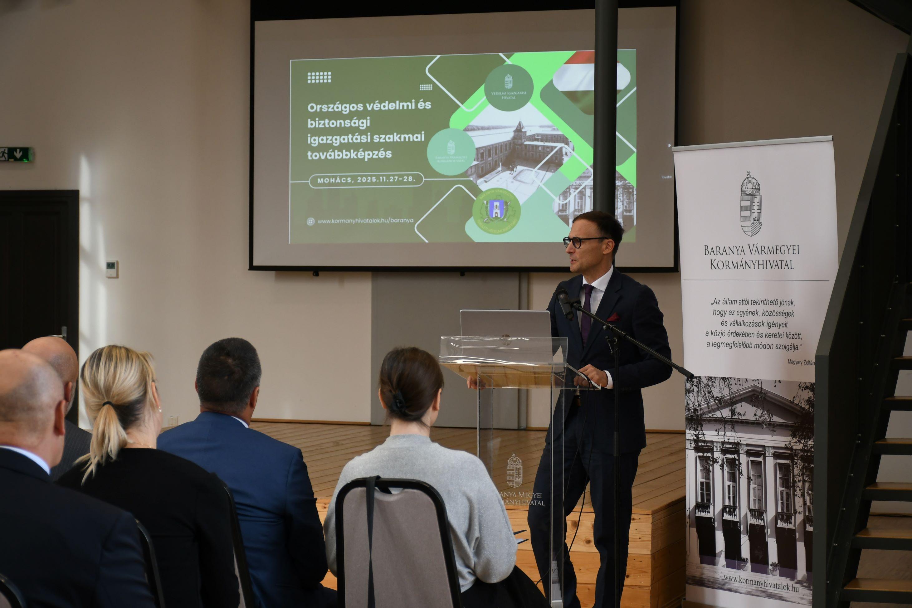 Országos védelmi és biztonsági igazgatási szakmai továbbképzést tartottak Mohácson november végén. A Baranya Vármegyei Kormányhivatal, a Baranya Vármegyei Területi Védelmi Bizottság és a Védelmi Igazgatási Hivatal közös rendezvényén a védelmi bizottságok elnökei, titkárai és helyetteseik kaptak tájékoztatást az aktuális védelmi igazgatási témákban.