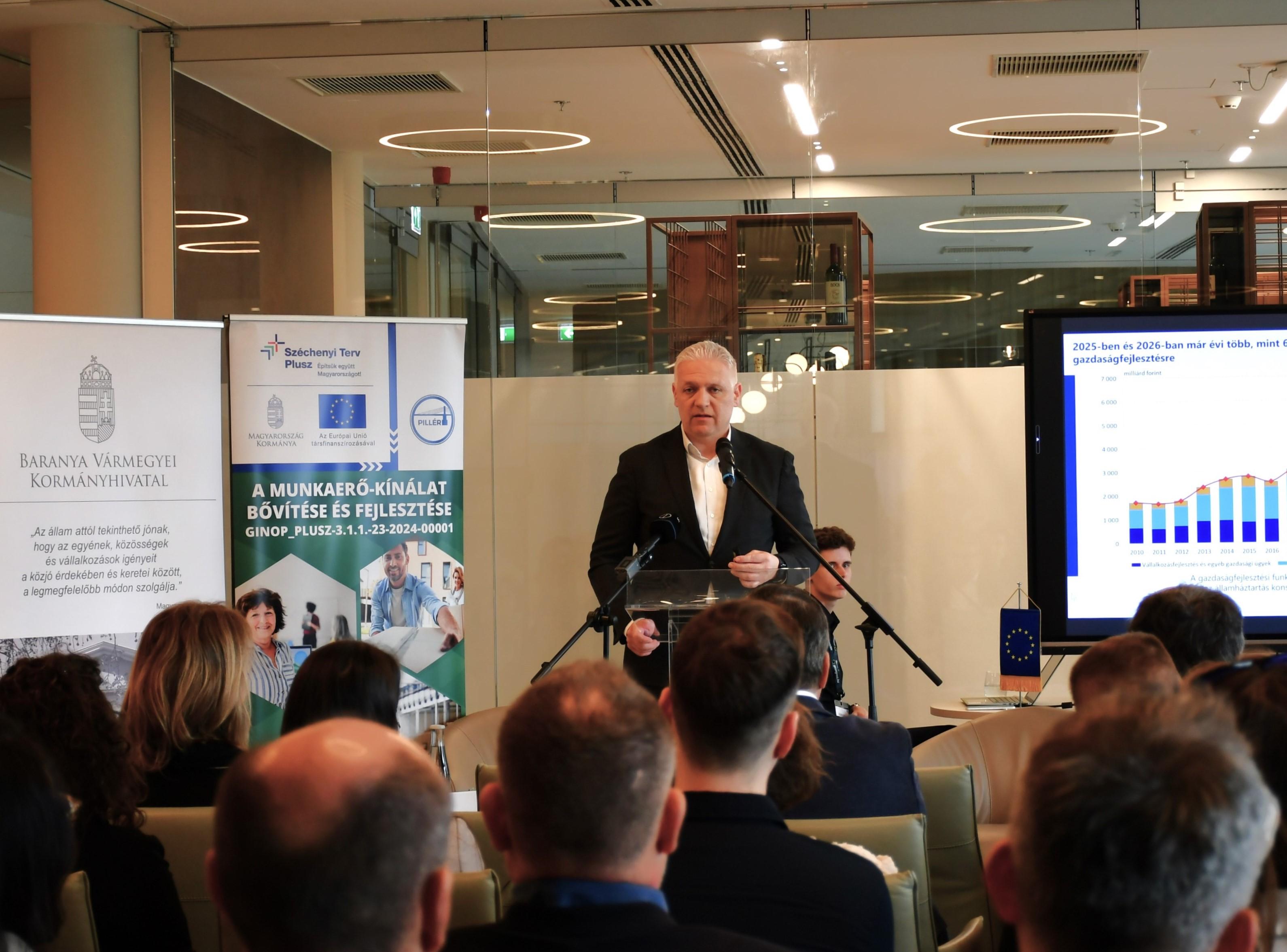 Az eseményen résztvevő munkáltatók meghívására, a számukra szervezett fórumok megtartására a GINOP_PLUSZ-3.1.1-23-2024-00001 kódszámú „A munkaerő-kínálat bővítése és fejlesztése” elnevezésű munkaerőpiaci program kertében került sor. A Baranya vármegyében összesen 8,056 milliárd forint európai uniós forrásból megvalósuló, 2029 augusztusáig tartó Pillér projektben már közel 1900 álláskereső kapott segítséget. A programról és az abban elérhető vissza nem térítendő támogatási lehetőségekről bővebb információ található a www.munka.hu oldalon, valamint a kormányhivatal honlapján.