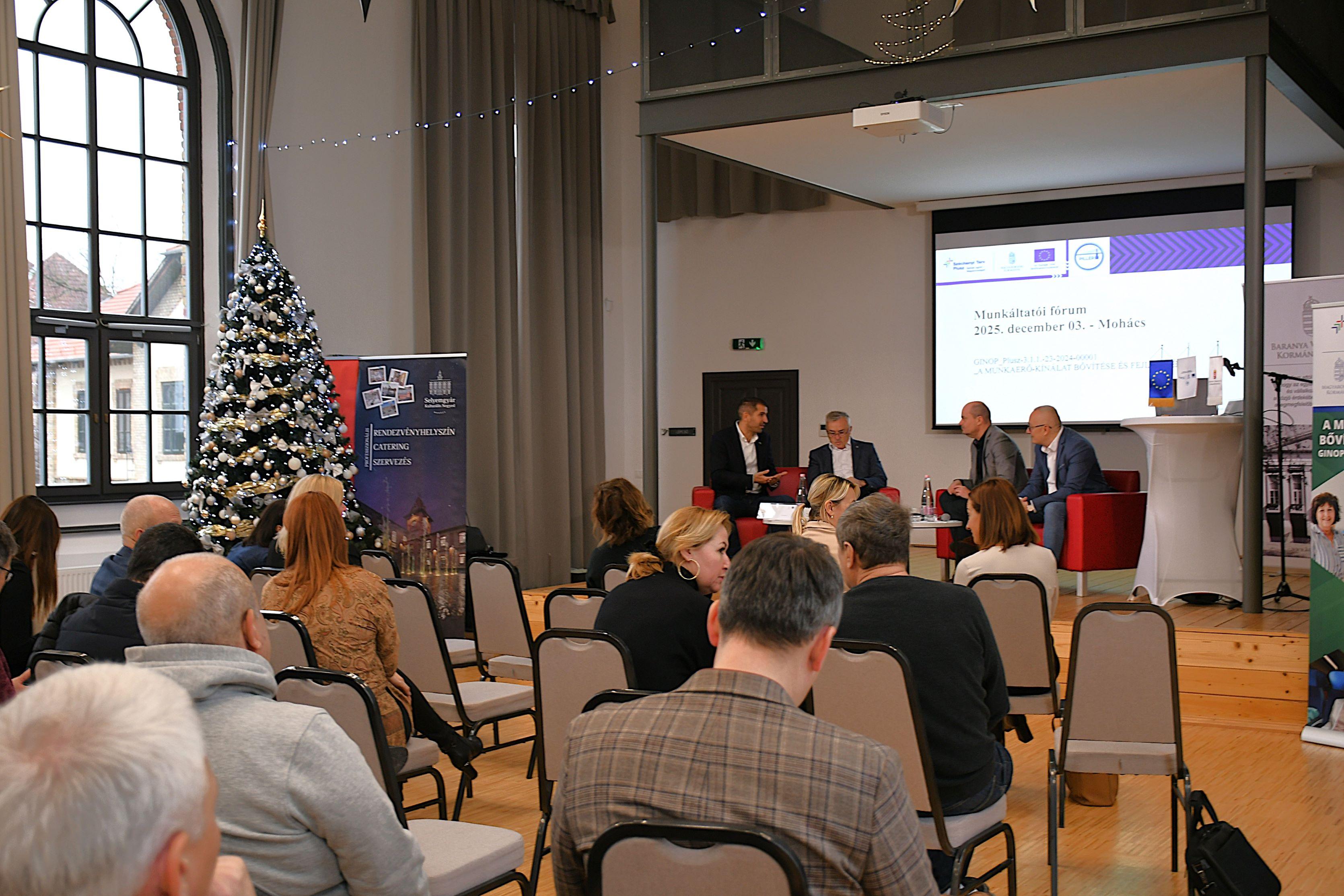 „A munkaerő-kínálat bővítése és fejlesztése” elnevezésű, az Európai Unió támogatásával megvalósuló, a hazai munkaerőpiac versenyképességének erősítését, a foglalkoztatás bővítését és a tartós inaktivitás csökkentését elősegítő, stratégiai jelentőségű Pillér projekt keretében szervezett munkáltatói fórumot a Baranya Vármegyei Kormányhivatal Mohácson december elején.