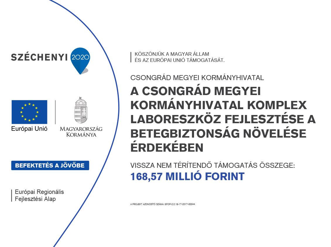 Projekt címe: A Csongrád Megyei Kormányhivatal komplex laboreszköz fejlesztése a betegbiztonság növelése érdekében