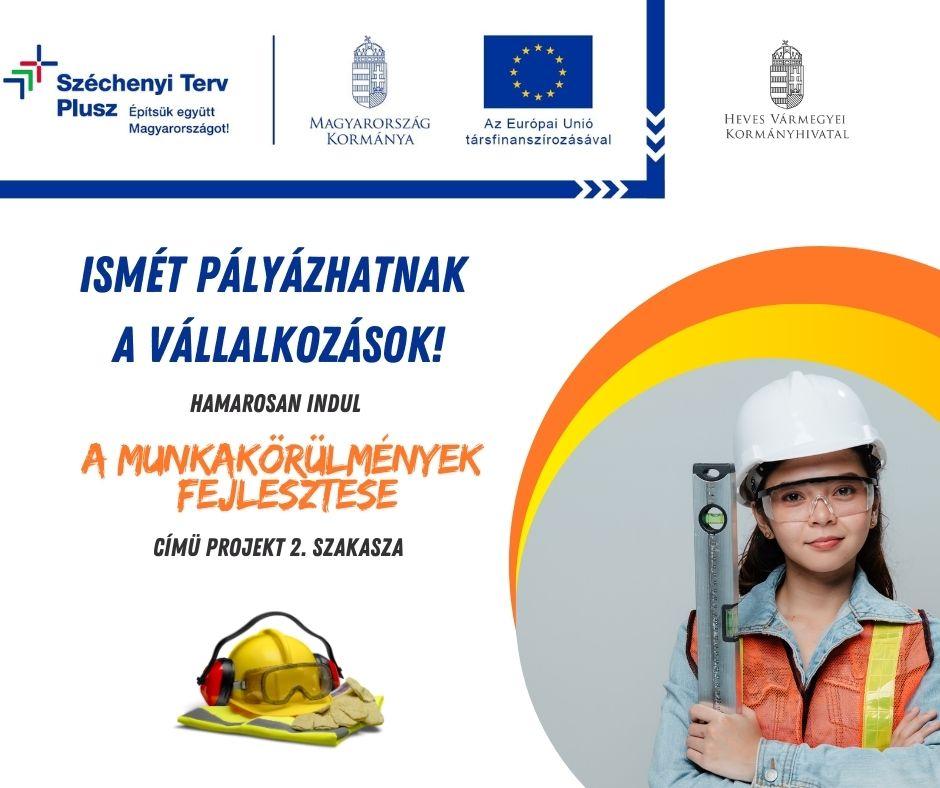 Hamarosan indul a GINOP_PLUSZ-3.2.5-24-2024-00001 „Munkakörülmények fejlesztése” elnevezésű kiemelt projekt keretében a munkavédelmi szint emelését célzó támogatási konstrukció 2. szakasza. Márciustól mintegy további 1,8 Mrd forintnyi vissza nem térítendő támogatás válik elérhetővé mikro-, kis- és középvállalkozások számára. Heves vármegyében 105 millió forintos keretösszegre pályázhatnak a vállalkozások. A vissza nem térítendő támogatást társfinanszírozás keretében az Európai Szociális Alap+, valamint Magyarország költségvetése biztosítja.