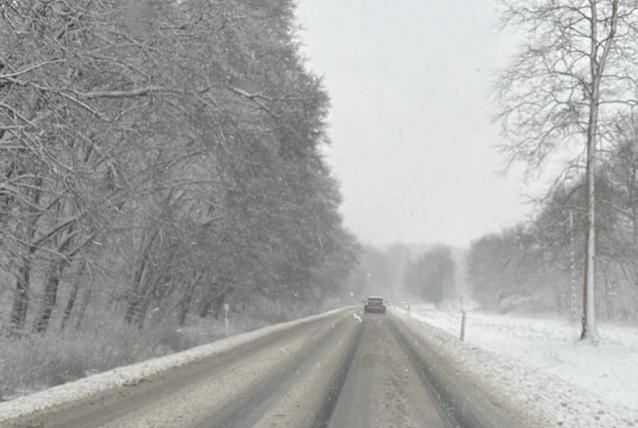 A hóesés miatt az utak több helyen csúszóssá váltak, a látótávolság lecsökkent.
