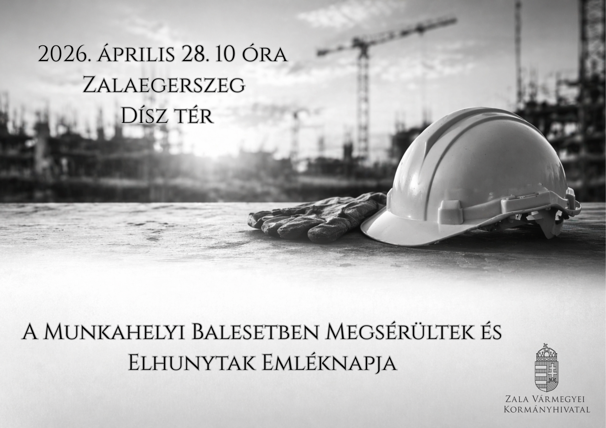 A Zala Vármegyei Kormányhivatal Foglalkoztatási, Foglalkoztatás-felügyeleti és Munkavédelmi Főosztálya tisztelettel meghívja Önt a munkahelyi balesetben megsérültek és elhunytak emléknapja alkalmából rendezett megemlékezésre.