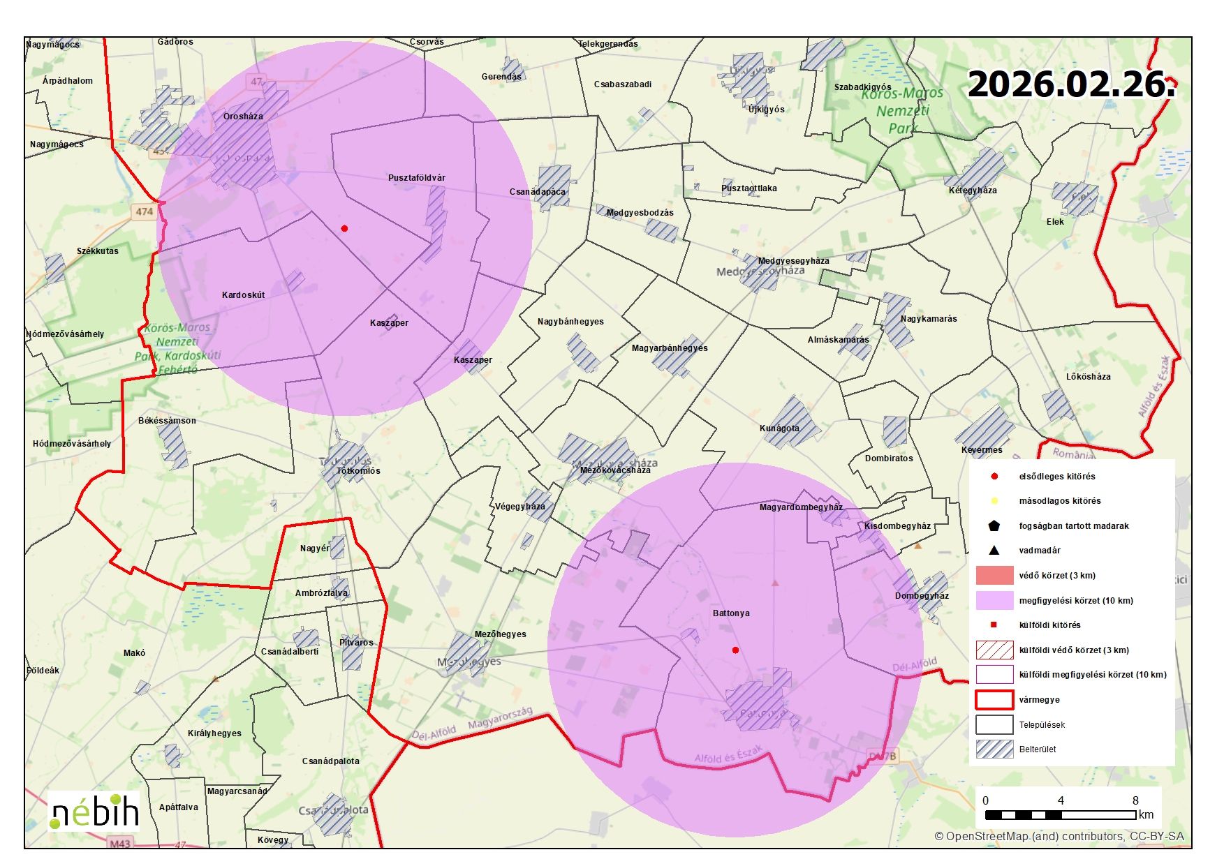 Védőkörzet oldása és felügyeleti körzet bővítése madárinfluenza betegség hatósági megállapítása miatt