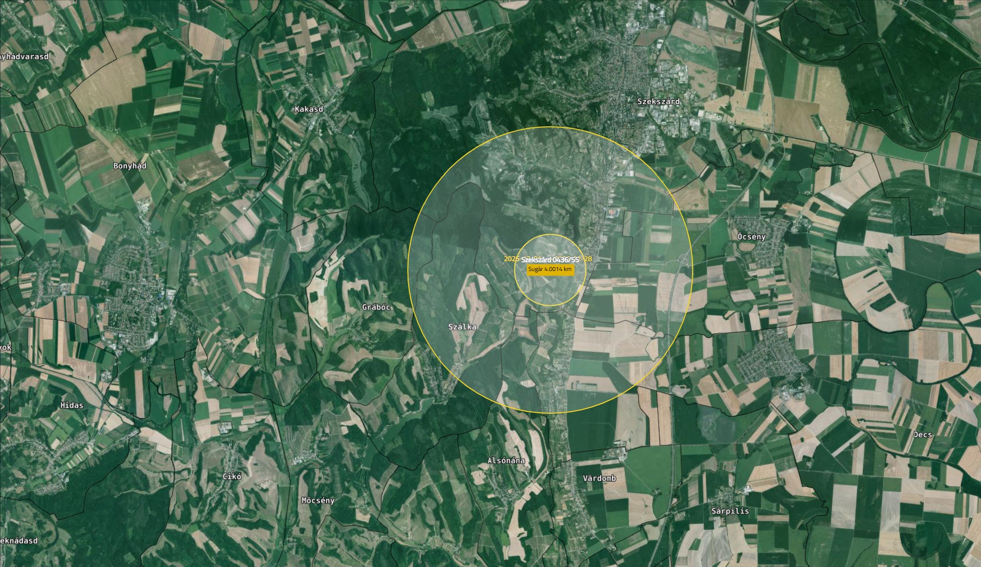 Érintettek köre: Szekszárd 0436/55, 56, 57 hrsz.-ú fertőzött területe 1-4 km sugarú körében található