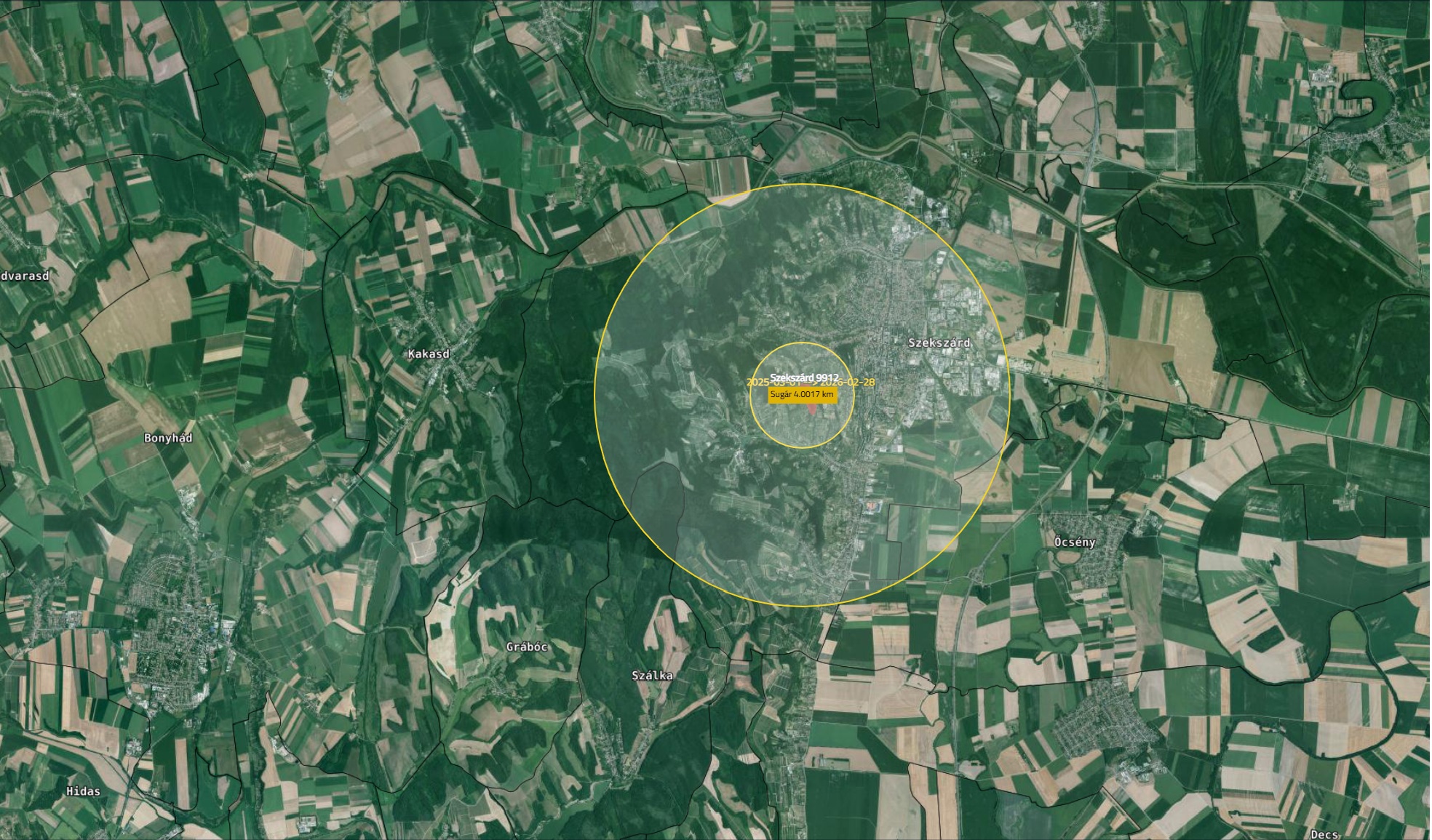 Érintettek köre: Szekszárd 9912 hrsz.-ú fertőzött területe 1-4 km sugarú körében található