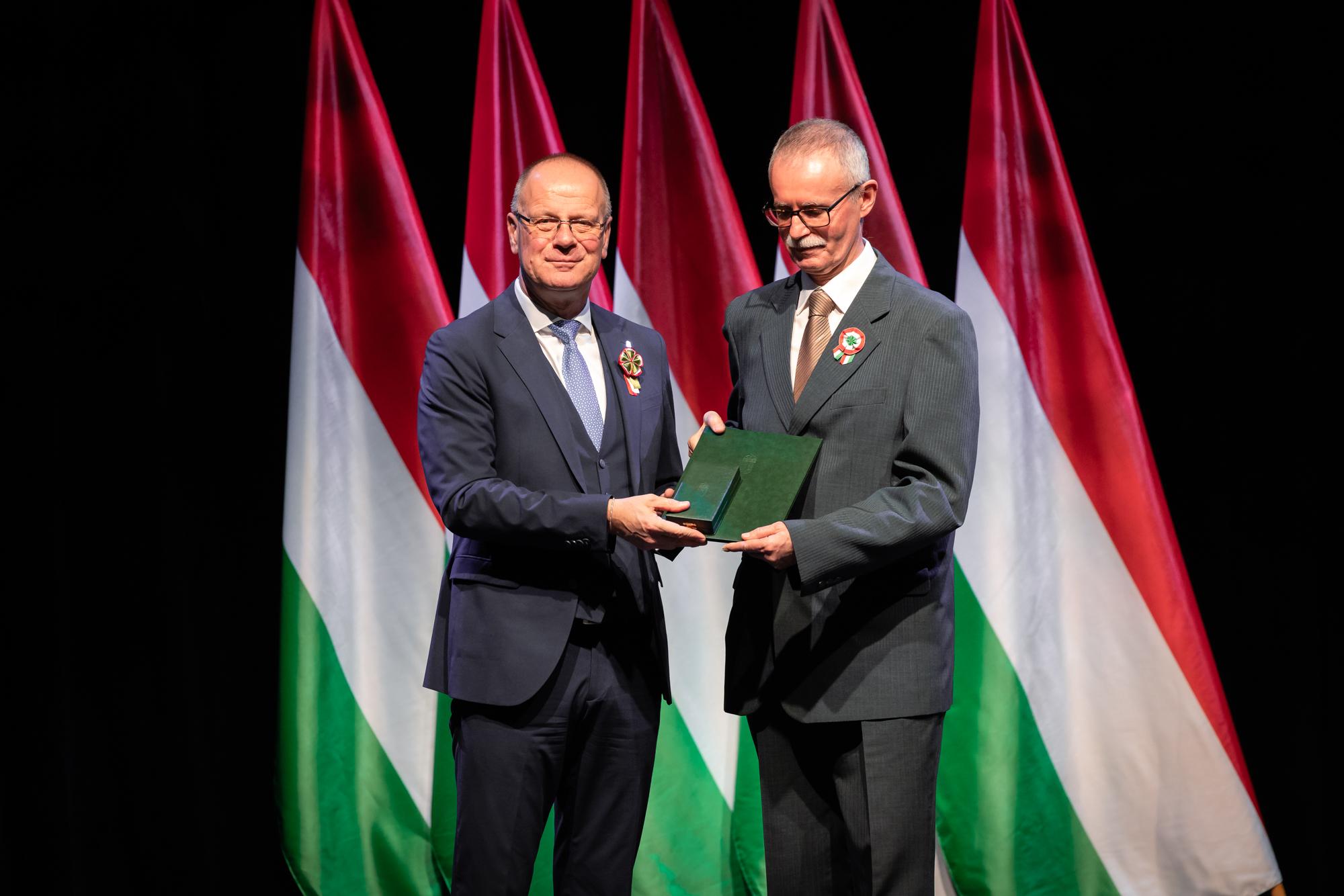 A Bács-Kiskun Vármegyei Kormányhivatal Élelmiszerlánc-biztonsági és Állategészségügyi Főosztály nyugalmazott vármegyei főállatorvosa és főosztályvezetője az állami kitüntetést március 13-án, Budapesten a Hagyományok Házában megrendezett ünnepségen vette át Navracsics Tibor közigazgatási és területfejlesztési minisztertől.