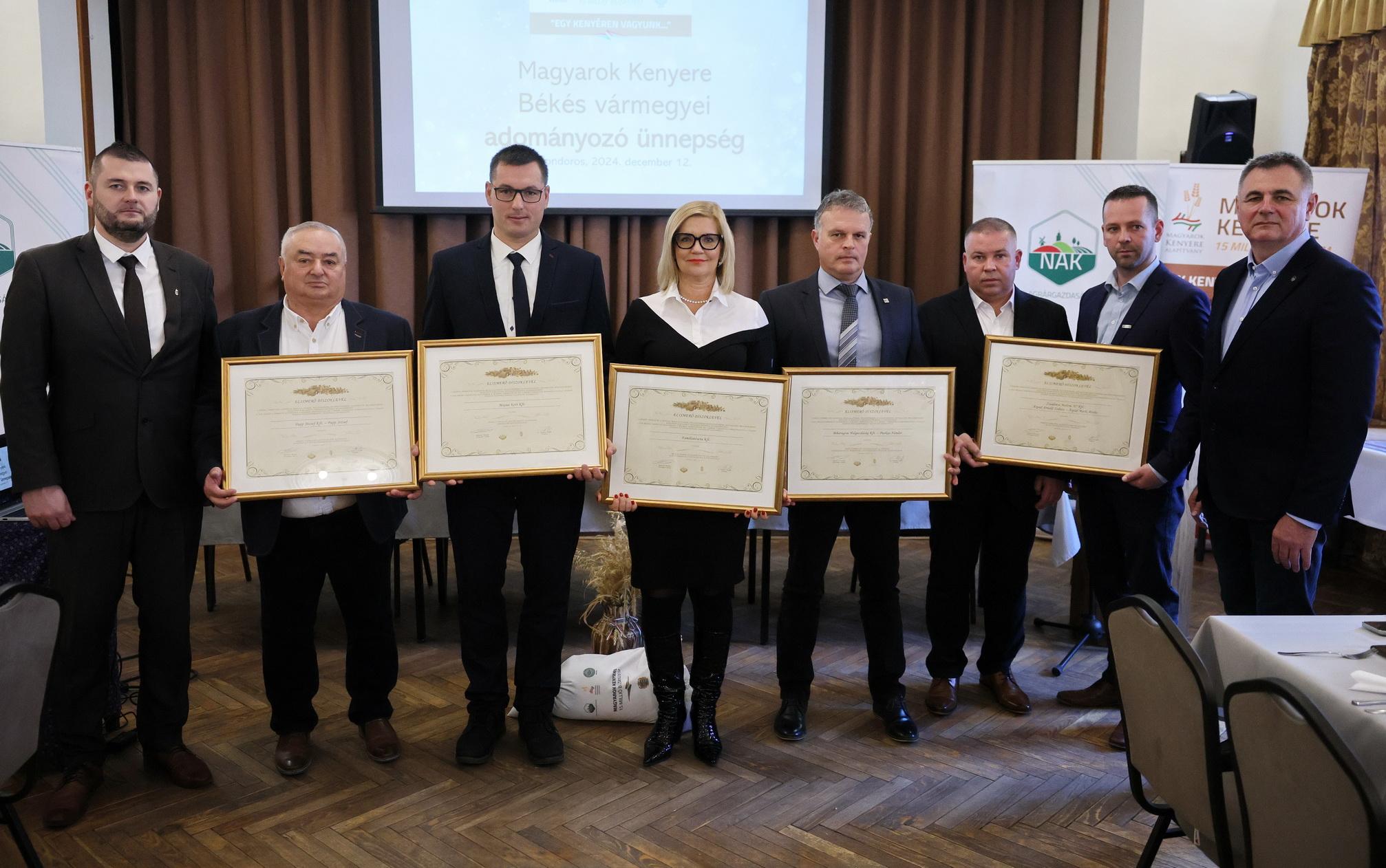 Idén szántóföldi növénytermesztés kategóriában a Papp József Kft. (Papp József), állattenyésztésben a Zsadányi Malom ’97 Kft., kertészet kategóriában a Majsai Kert Kft., élelmiszeripar – gasztronómiában a mezőberényi Famíliatészta Kft., agrárinnováció, környezet- és természetvédelem kategóriában a Biharugrai Halgazdaság Kft. (Puskás Nándor), míg agrárképzés – agrárigazgatás – agrárszolgáltatás kategóriában Szabó János, a Körös-vidéki Vízügyi Igazgatóság nyugalmazott igazgatója vehette át a Békés Vármegye Agráriumáért díjat. A kitüntető díjakat Kozsuch Kornél, a NAK és a MAGOSZ Békés vármegyei elnöke, illetve dr. Rákóczi Attila, a Békés Vármegyei Kormányhivatal főigazgatója adta át.
