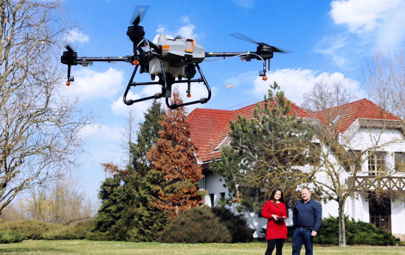 A képesítési bizonyítványok ünnepélyes átadását követően a MATE Öntözésfejlesztési, Demonstrációs és Képzési Központjában Simon Szabina, az ország első női, hivatásos növényvédelmi drónpilótája szakkommentátori közreműködésével tartottak drónbemutatót.