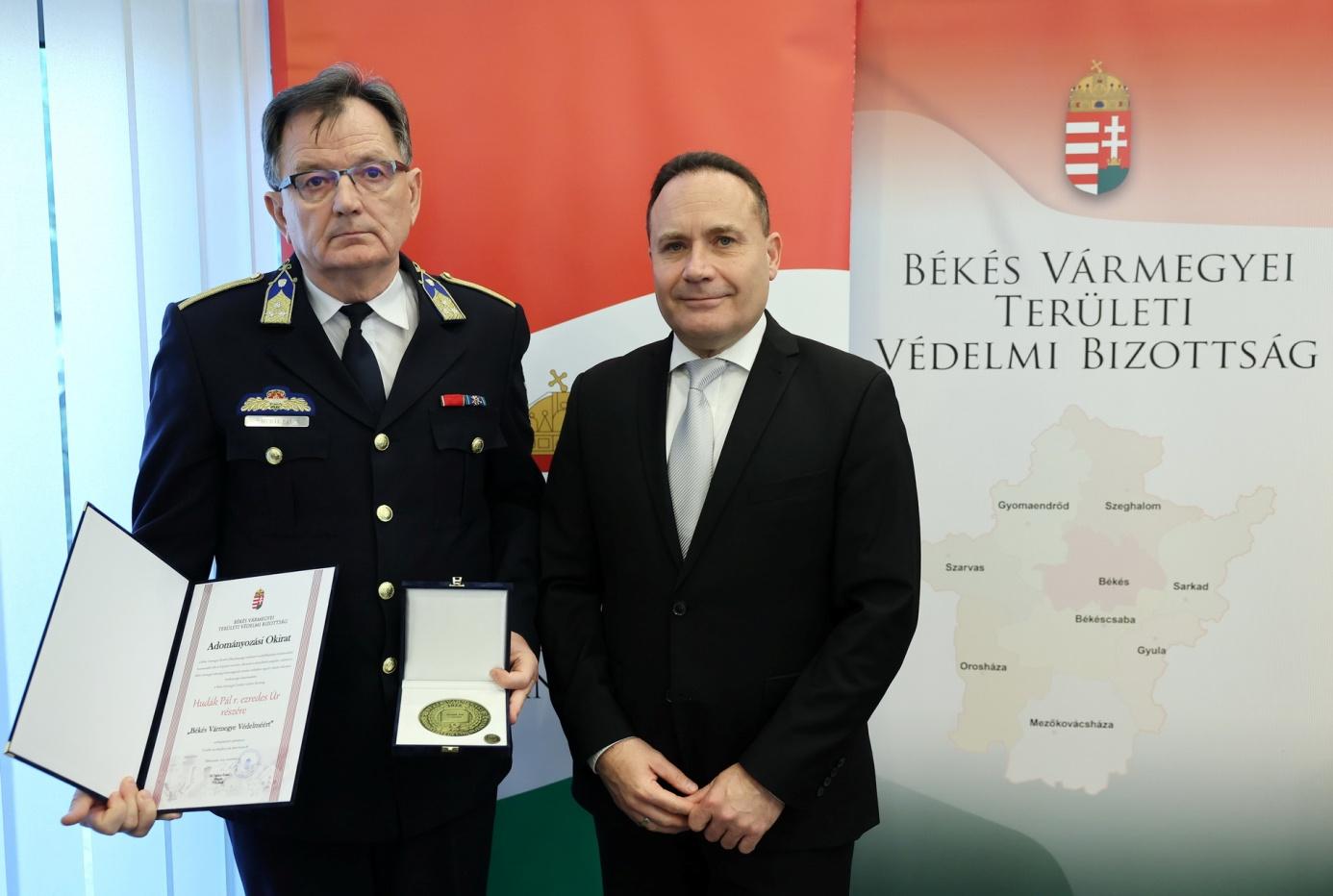 A kormányhivatal Beliczey termében tartotta idei második féléves ülését a Békés Vármegyei Területi Védelmi Bizottság. A grémium döntése értelmében idén Békés Vármegye Védelméért kitüntető címben részesült: Hudák Pál rendőr ezredes, rendőrségi főtanácsos, a Békés Vármegyei Rendőr-főkapitányság rendészeti rendőrfőkapitány-helyettese, dr. Melis János Szarvas város nyugalmazott címzetes főjegyzője és Gregor László, a Magyar Tartalékosok Szövetsége Békés Vármegyei Szervezetének elnökségi tagja, a MATASZ békéscsabai városi szervezetének vezetője.