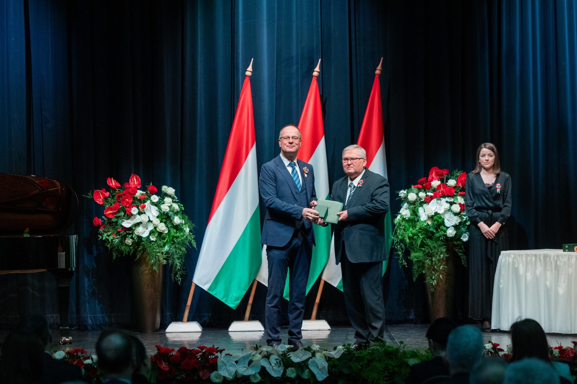 Magyar Arany Érdemkereszt elismerést vehetett át dr. Oláh József, a Jogi és Koordinációs Főosztály korábbi főosztályvezetője. A kormányhivatal V. Kerületi Hivatalának korábbi gyámügyi, gyermekvédelmi és hatósági feladatot támogató munkatársa, dr. Kunszt Róbert pedig Magyar Ezüst Érdemkeresztet kapott.