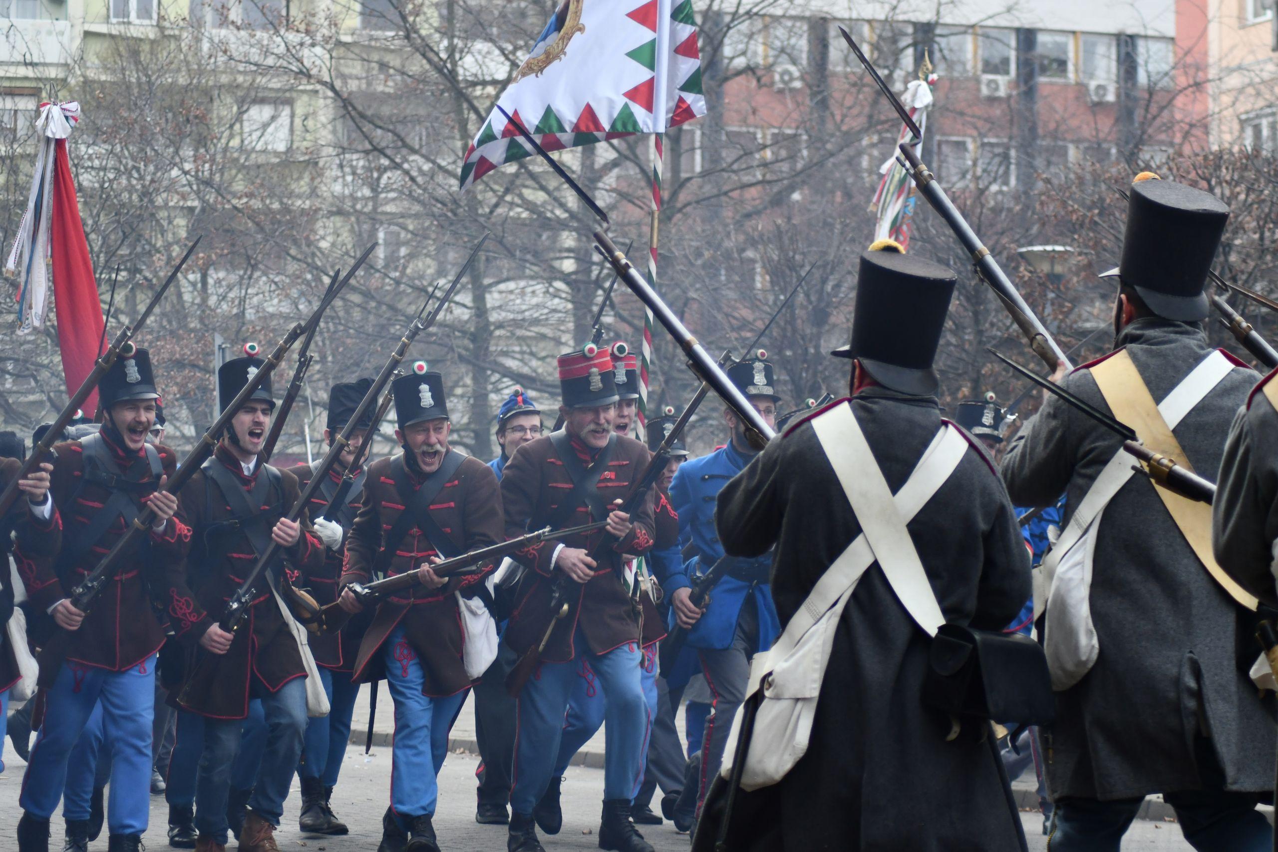 Lódobogástól, ágyúszótól volt hangos a főtér, ahol nyolc lovas, valamint kétszáz hagyományőrző keltette életre a Szolnok és Abony között zajló ütközetet, amelynek végén Damjanich János seregei vereséget mértek az osztrák csapatokra. A császári-királyi védelem parancsnoka Ladnai Bálint hagyományőrző százados, a támadó magyar királyi seregek parancsnoka Udovecz György hagyományőrző ezredes, a Jászkun Magyar Királyi Honvéd Hadikultúra Alapítvány elnöke volt.