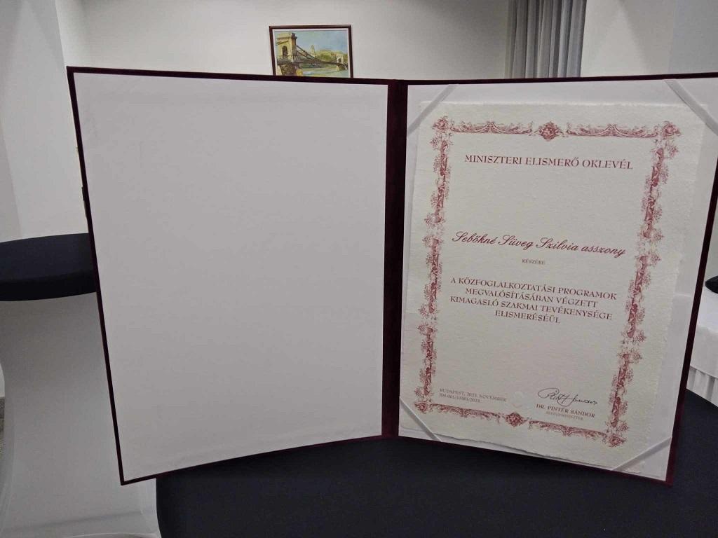 Miniszteri elismerésben részesült munkatársunk Sebőkné Süveg Szilvia