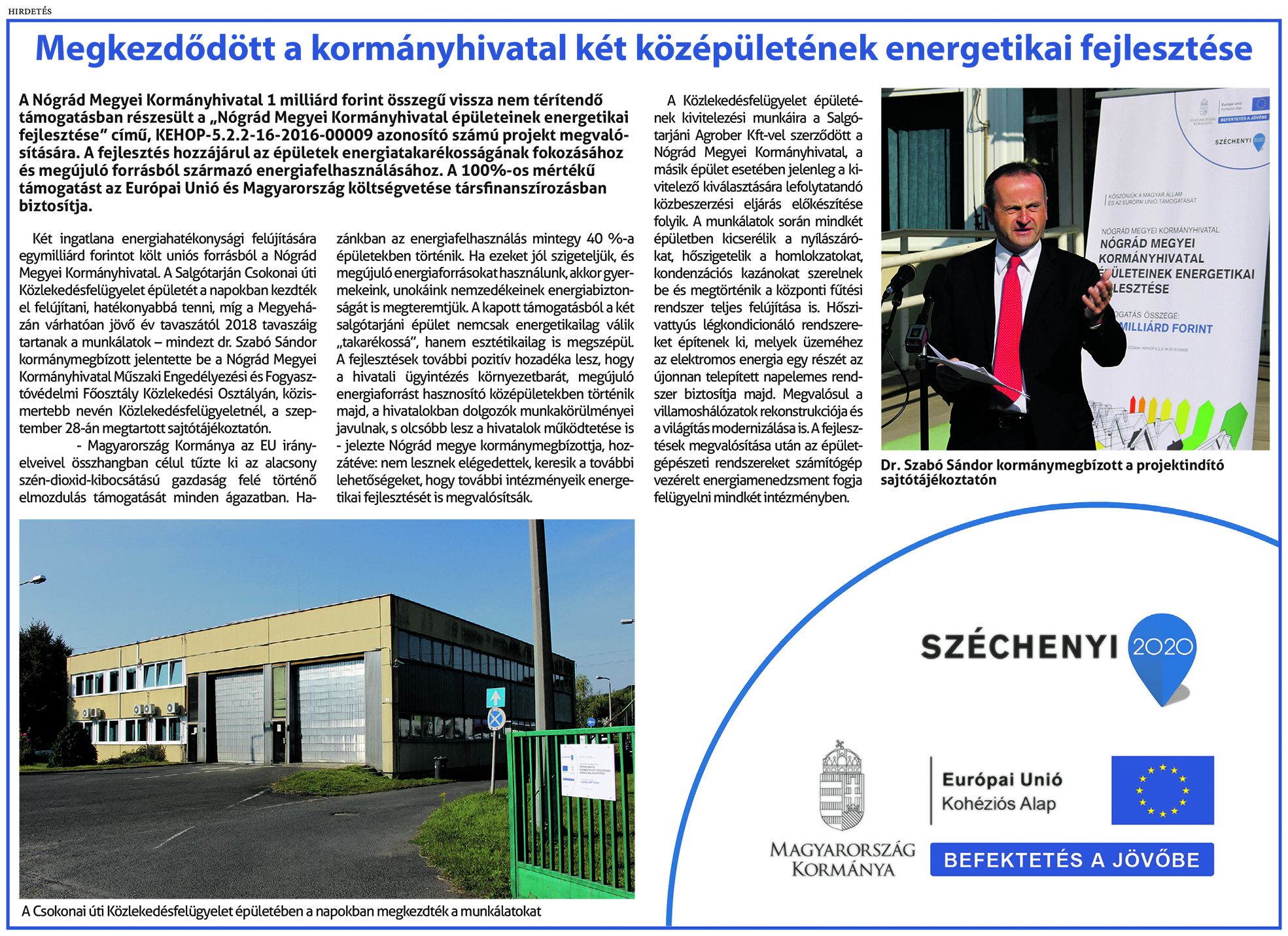 Projekt címe, azonosító szám: Nógrád Megyei Kormányhivatal épületeinek energetikai fejlesztése KEHOP-5.2.2-16-2016-00009
