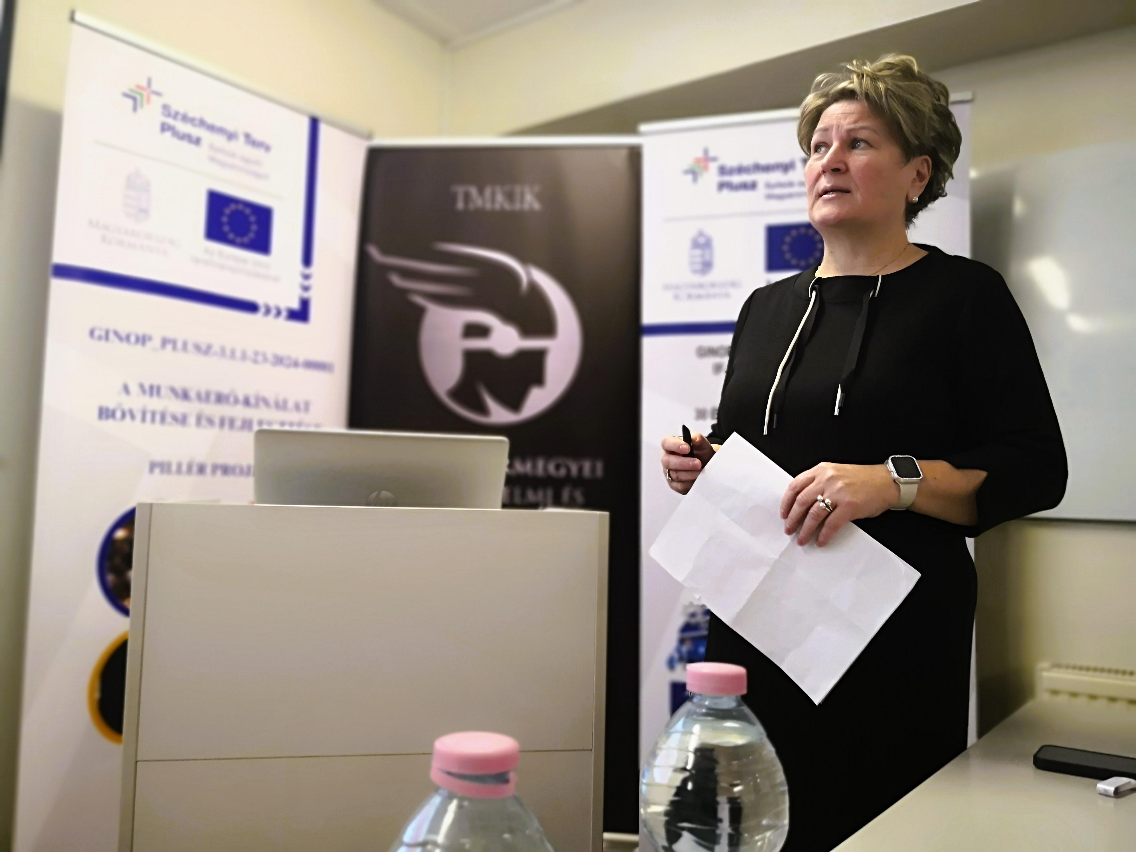 A foglalkoztatási támogatásokról Némedi Ágnes, kormányhivatalunk Foglalkoztatási, Foglalkoztatás-felügyeleti és Munkavédelmi Főosztályának vezetője tartott előadást. Bemutatta a GINOP Plusz uniós programok által kínált támogatási lehetőségeket: a GINOP Plusz 4.1.1 Ifjúsági Garancia plusz program a fiatalok elhelyezkedését, munkatapasztalat szerzését, a GINOP Plusz 3.1.1 munkaerő-kínálat fejlesztését és bővítését célzó projekt a 30 éven felüli álláskeresők és inaktívak munkához jutását mozdítja elő különféle támogatásokkal: a foglalkoztatók részére nyújtott bértámogatással, mobilitási támogatásokkal (lakhatási támogatás és utazási támogatás), valamint képzésekkel, melyekkel piacképes szakképzettség szerezhető. Az álláskeresők a képzések idejére álláskeresést ösztönző juttatásban is részesülhetnek.