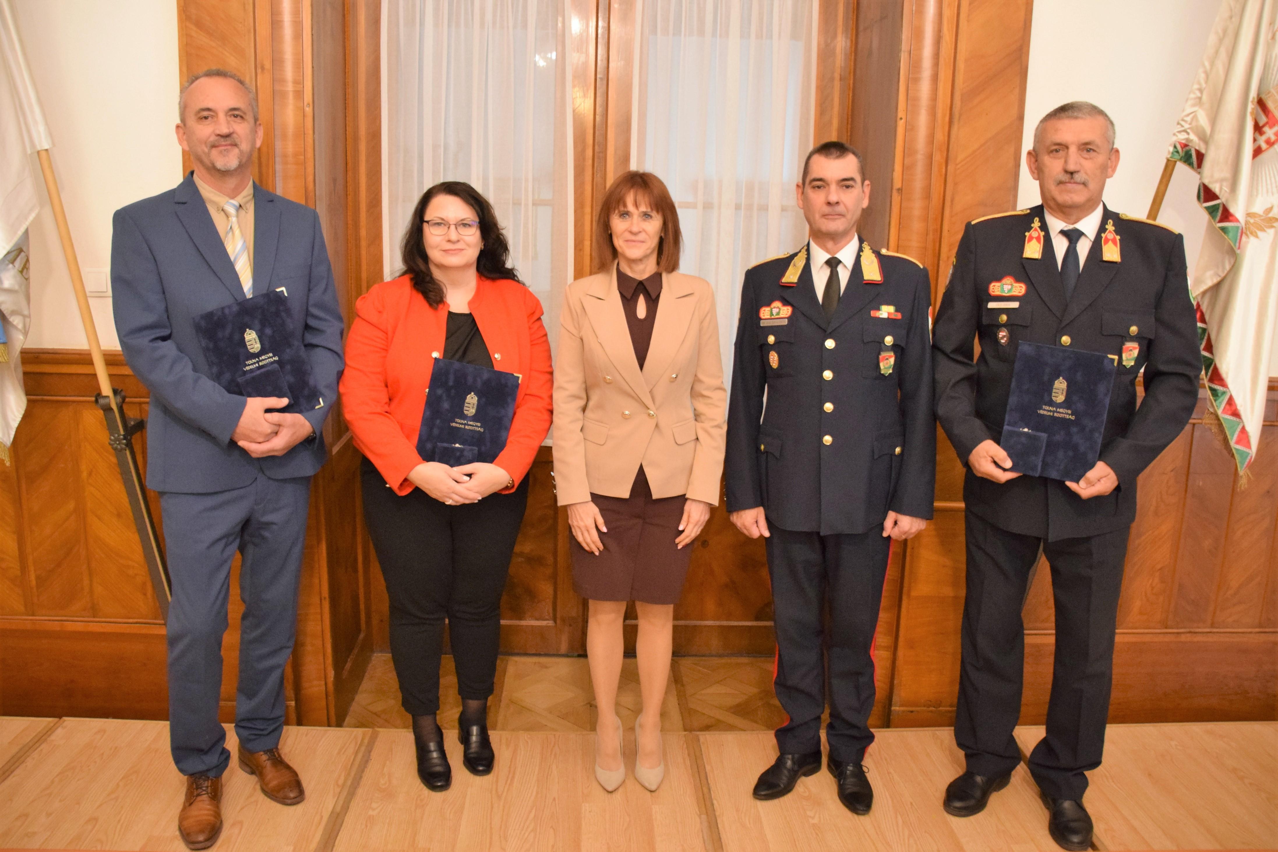 Az ülést követően a Tolna Vármegye Védelméért emlékérmek ünnepélyes átadására került sor. A Bizottság tagjainak javaslatára dr. Lehőcz Regina főispán, a Tolna Vármegyei Területi Védelmi Bizottság elnöke az 1/2025. számú elnöki határozatban foglalt döntése alapján Tolna Vármegye Védelméért emlékérem elismerésben részesítette a védelmi és biztonsági igazgatás területén tanúsított kiemelkedő helytállásért: